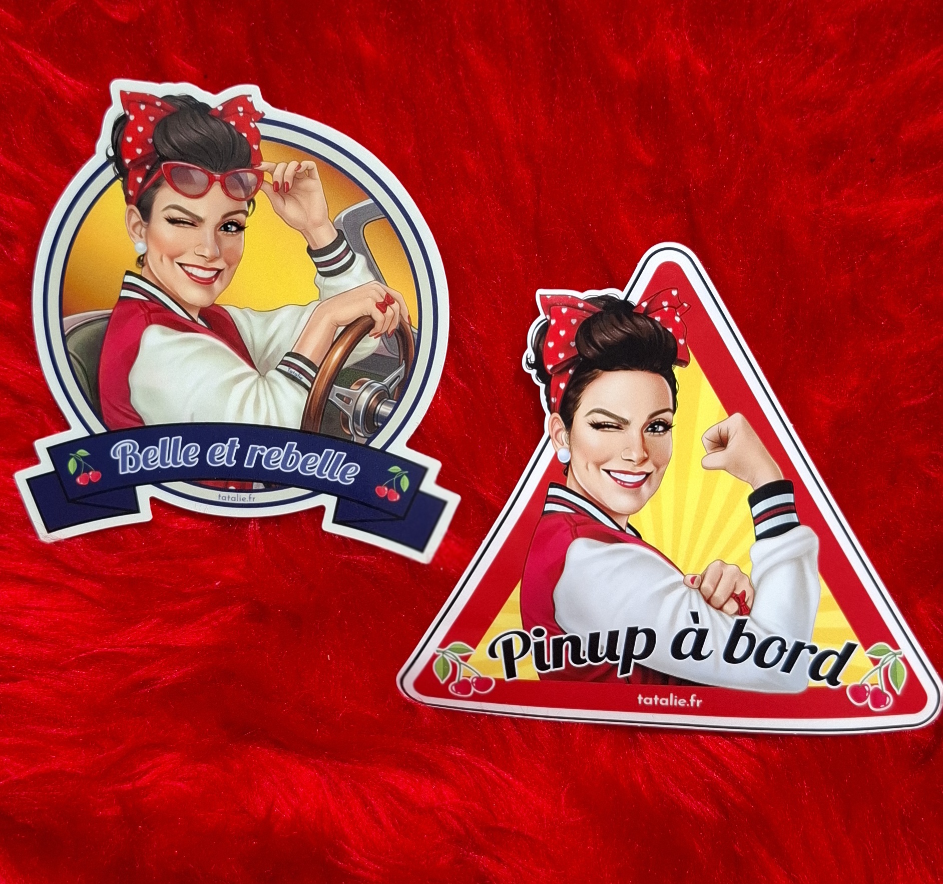 Lot de 2 Autocollants : « Belle et Rebelle » & « Pin Up à Bord » – Tarif Préférentiel !